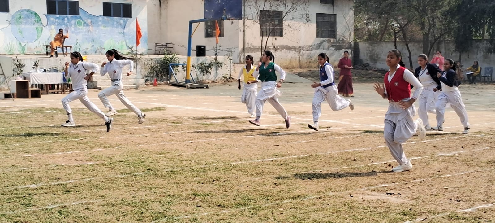 The school is built on a sprawling three-acre campus, three-story building designed for an enriching learning experience. A well-maintained playground offers dedicated spaces for various sports, including Volleyball, Kho-Kho, Basketball, Badminton, and Cricket. The classrooms are spacious, well-ventilated, and thoughtfully designed. Separate restrooms for boys and girls are available on every floor for convenience and hygiene.